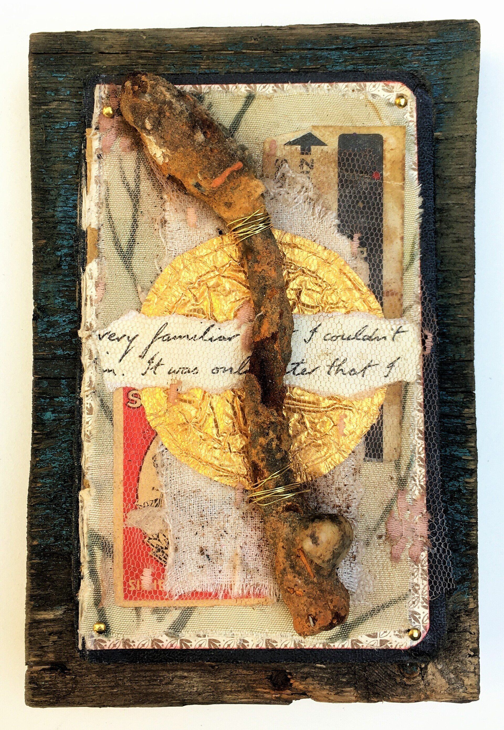 Data-lade 2021, op paneeltje 20x21 cm. mixed media