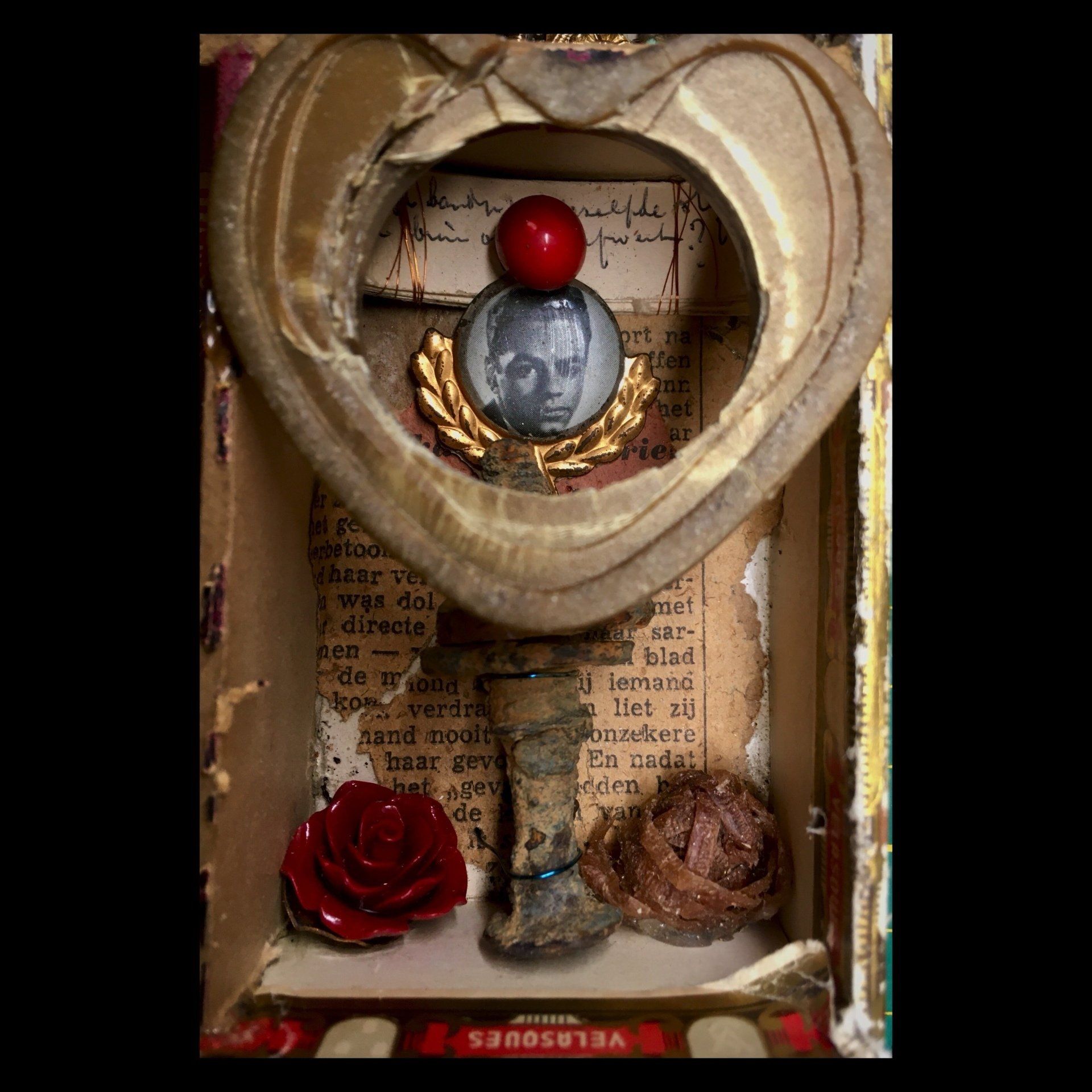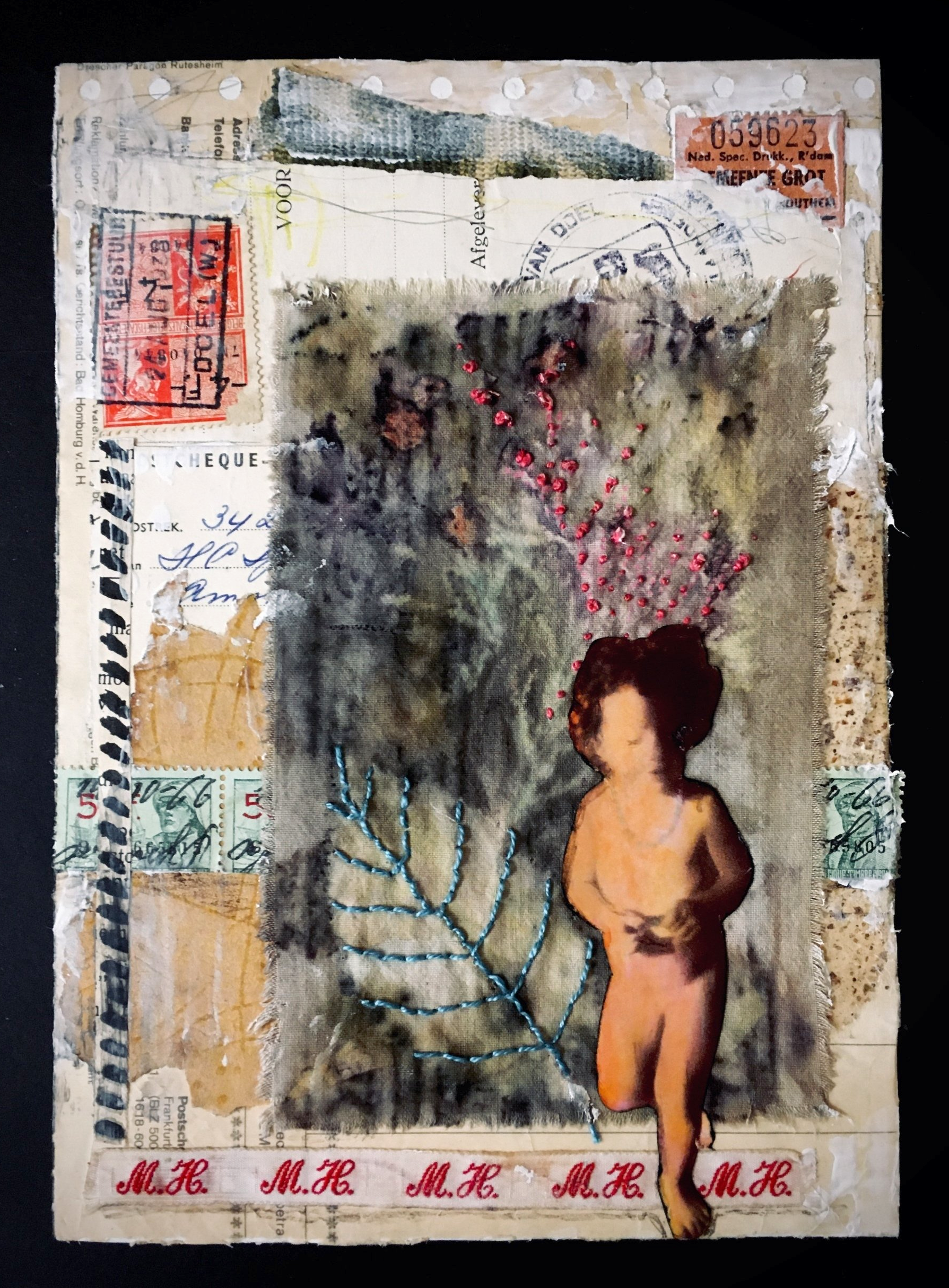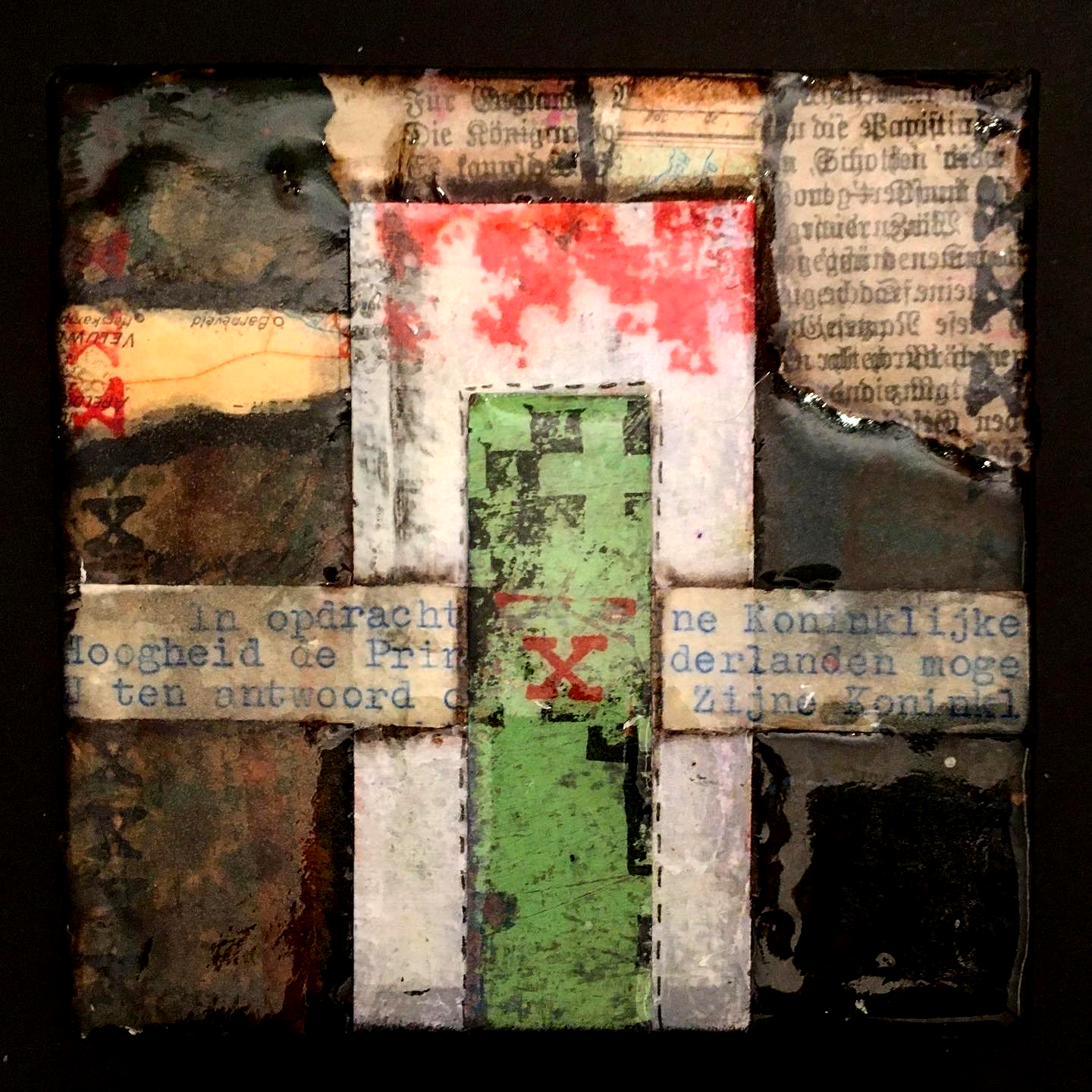 Uit serie lost & found, mixed media collage, 10x10x2cm