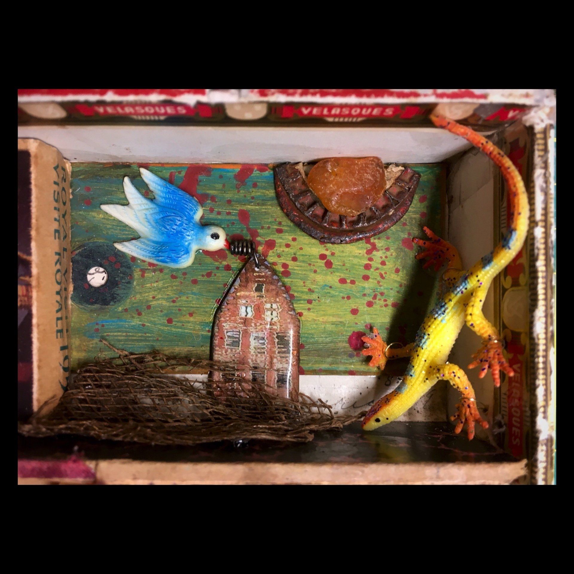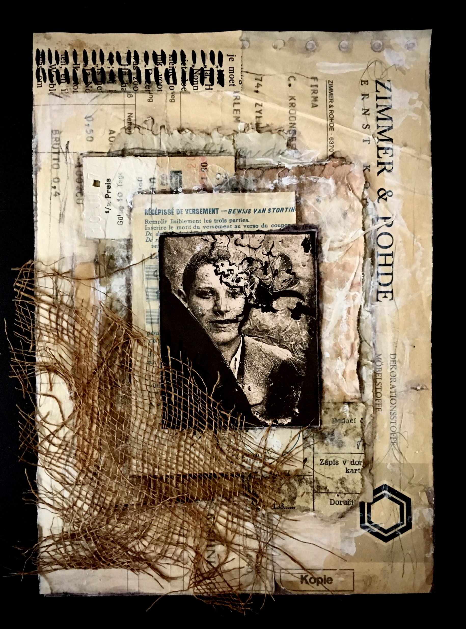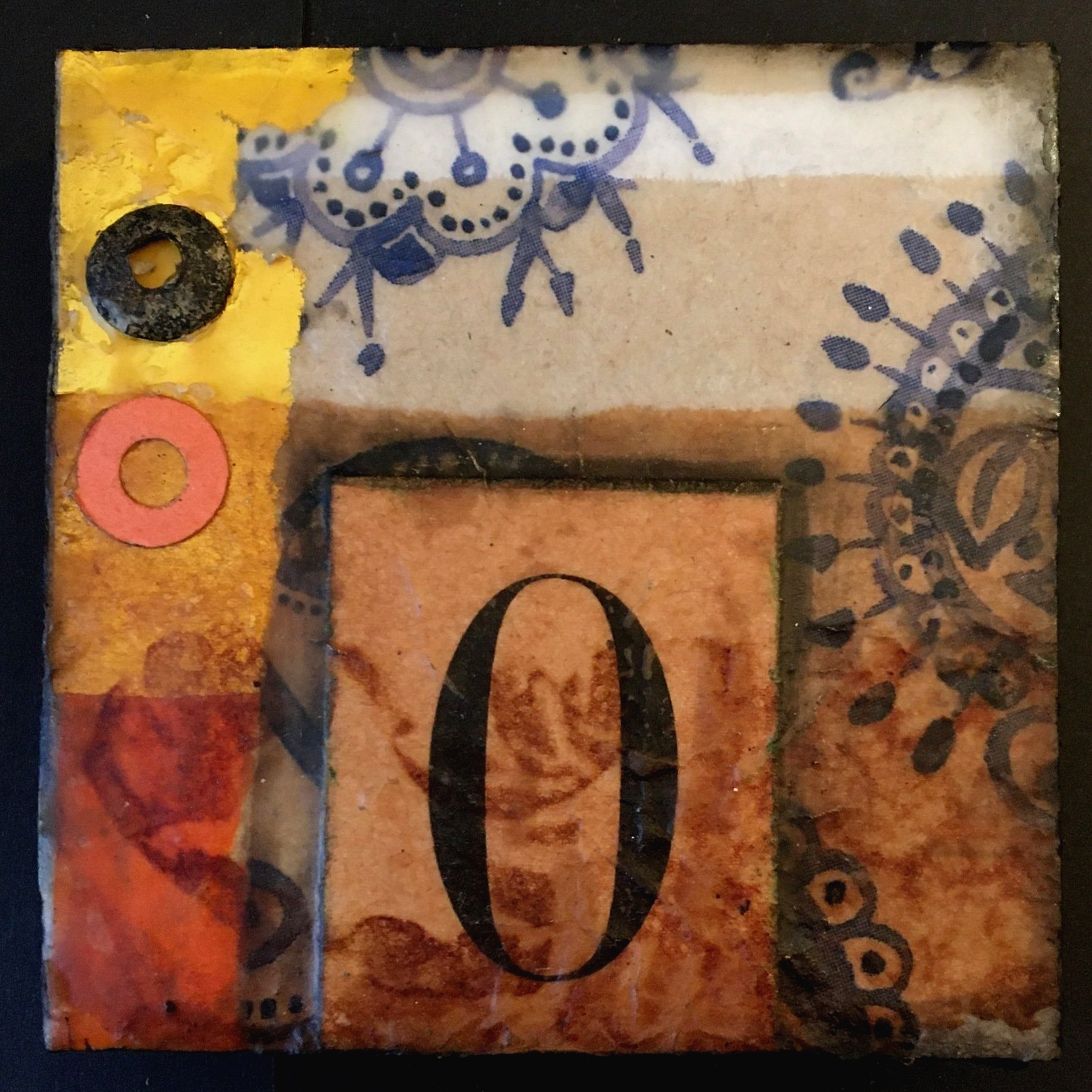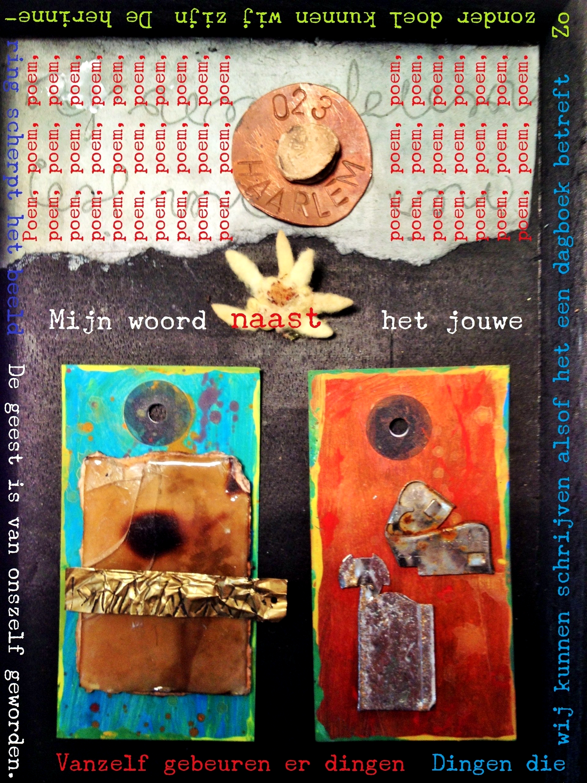 Uit serie lost & found, mixed media collage, 10x10x2cm